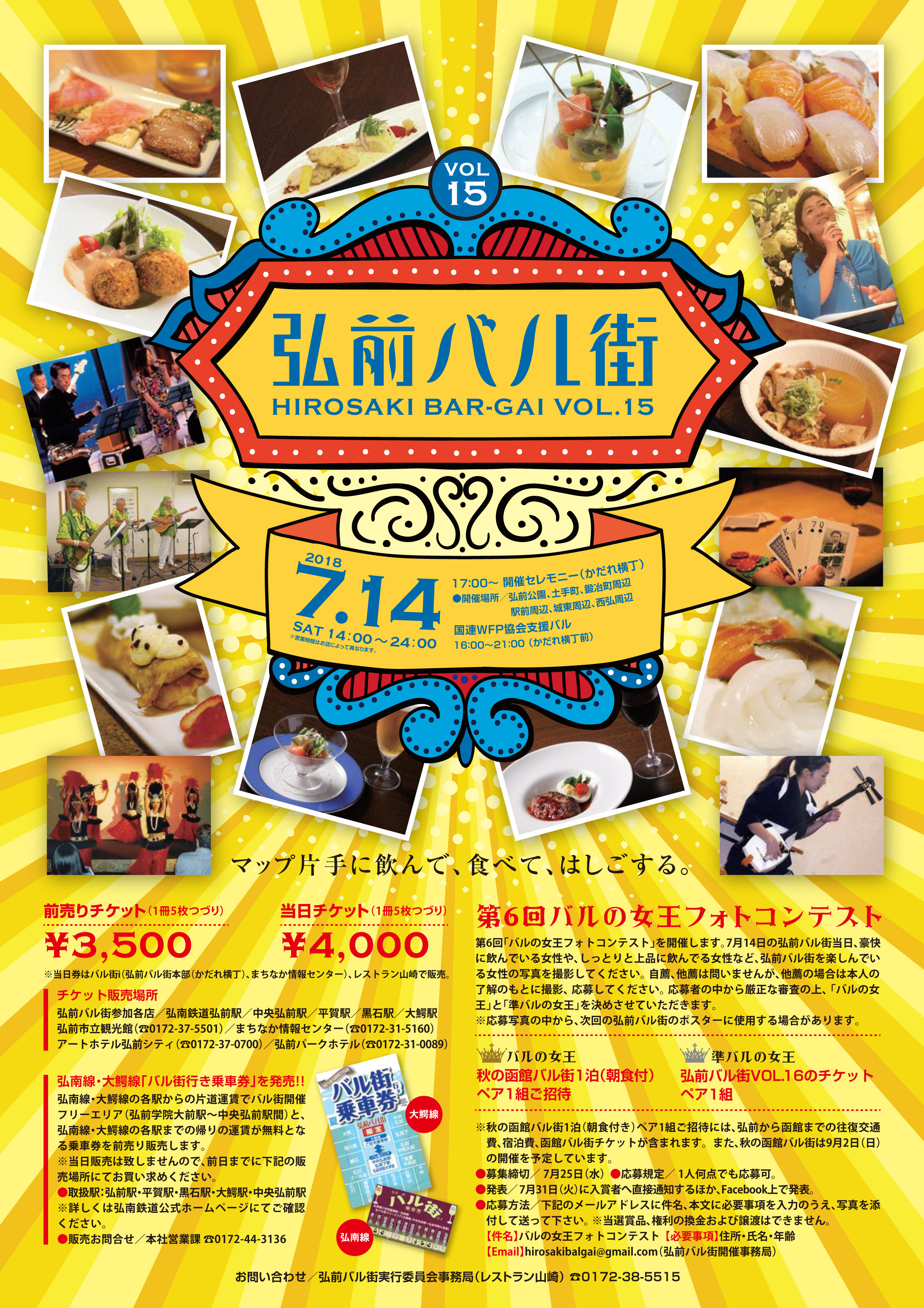 7月14日「弘前バル街VOL.15」開催(18.07.10)