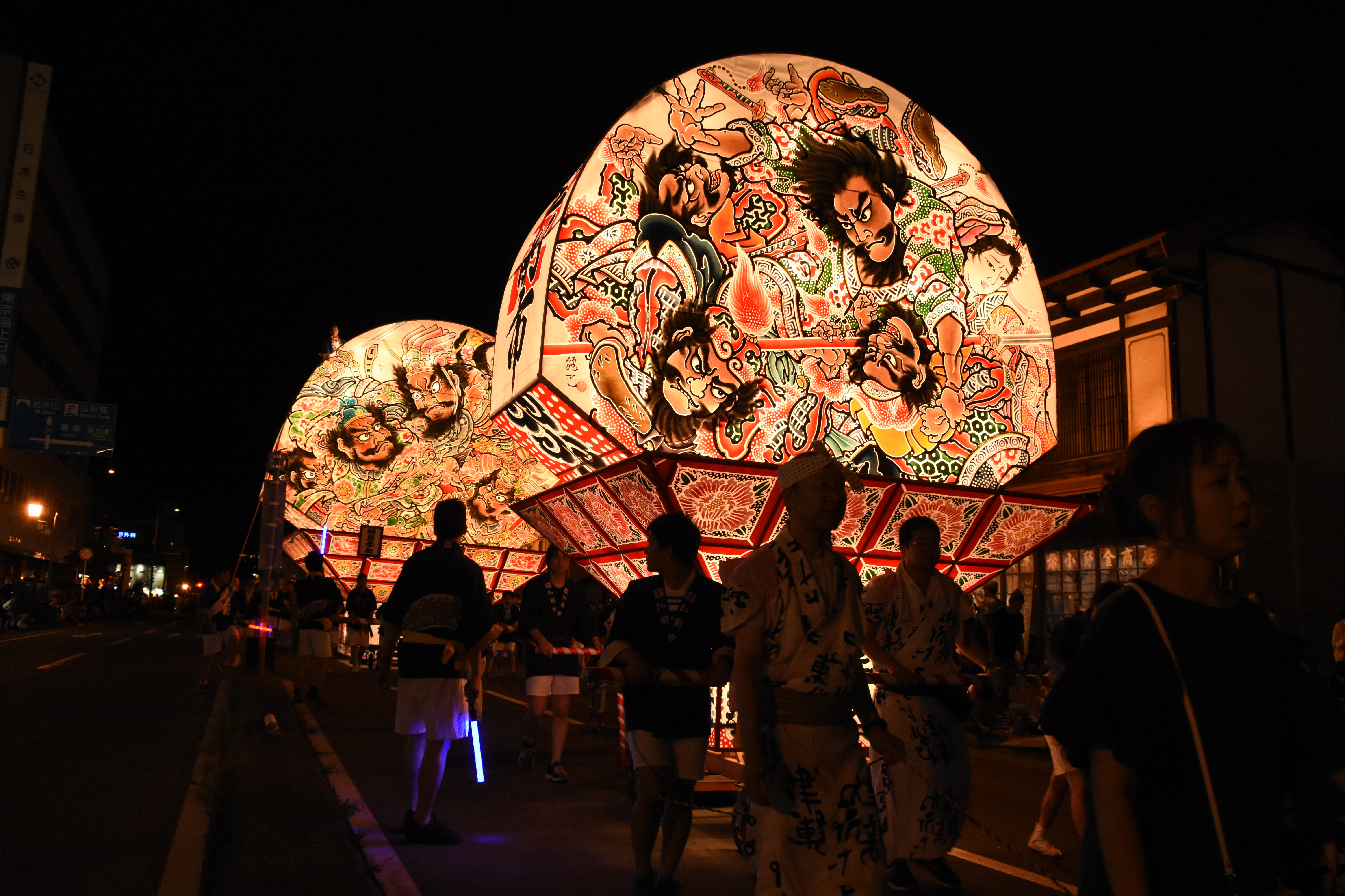 夜の運行は今日で見納め。弘前の夜を彩る勇壮なねぷたをぜひ見にきてください。
