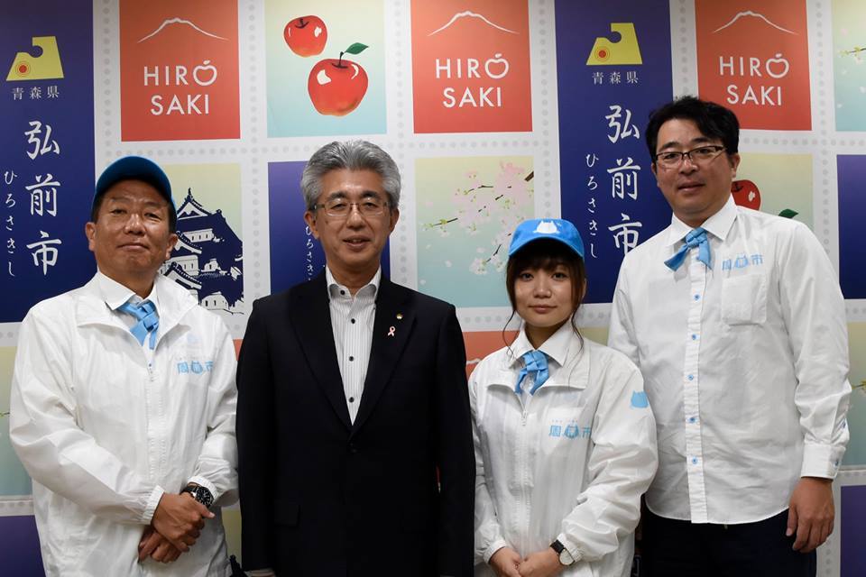 まちの魅力を全国に発信するため、キャラバンカーで全国を巡っている山口県周南市の職員が、弘前市役所を訪れ市長表敬を行いました。