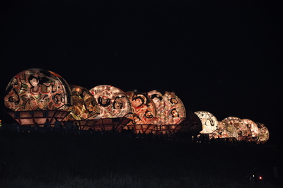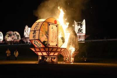 最終日の夜の「なぬかびおくり」では、岩木川沿いの土手を本ねぷたが運行する「ねぷたながし」が行われ、大いに会場を盛り上げました!