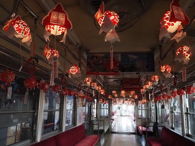 子ども金魚ねぷた列車の運行は8月29日(日)まで、9月1日(水)からはプロのねぷた絵師制作の金魚ねぷたを飾った車両が運行されます。