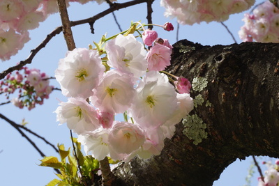 濃桃色の関山(かんざん)等が咲き始めました!
