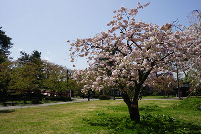 弘前公園では、関山のほか、弘前雪明かり、東錦(あずまにしき)、松月(しょうげつ)など、色とりどりの桜が咲き始めました!