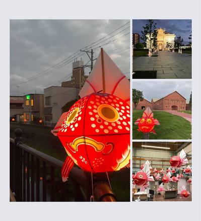 今年は土淵川沿いの金魚ねぷた装飾を蓬莱橋付近の橋詰広場から中央弘前駅自由通路を通り、弘前れんが倉庫美術館まで延長しております。ぜひご覧ください。