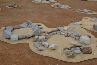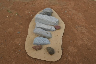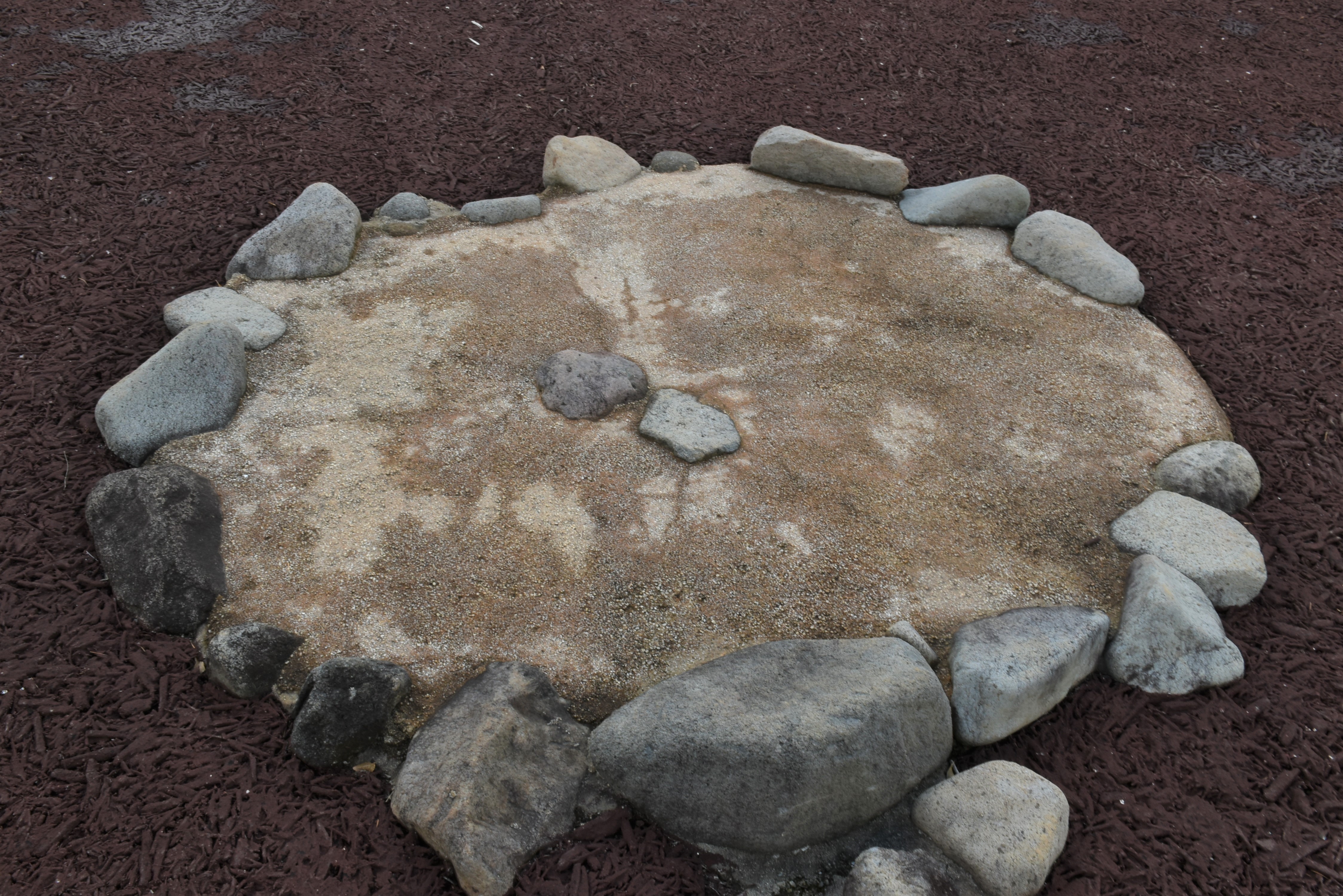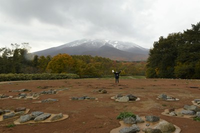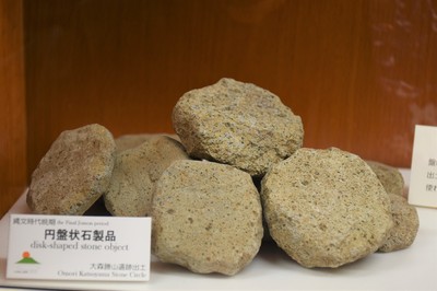 遺跡に入り最初に目に映るのは大規模な環状列石(ストーン・サークル)で小さな環状や、直線状などの様々な組石(石のグループ)から作られています。その中で、最も特徴があるのは、直径約5~10cmの円盤に加工した円盤状石製品(えんばんじょうせきせいひん)だと思います。小さくて丸い形をしていますので、他の石と違って見つけやすいです。約250個出土されたそうです。ぜひ、大森勝山遺跡で円盤状石製品を探してみてください!