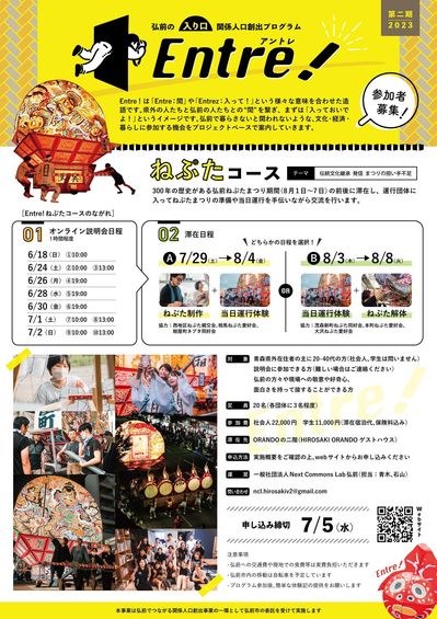 ねぷたを通じた文化・暮らし体験「Entre!」参加者募集(2023.06.22)