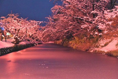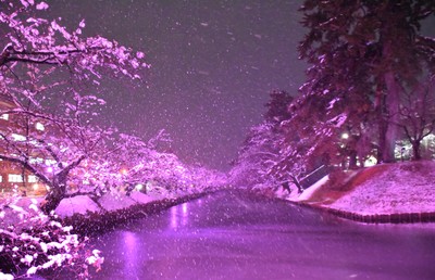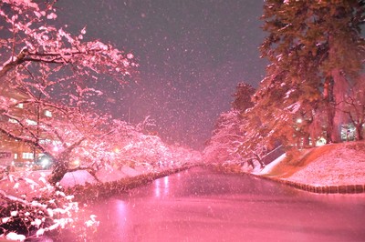 弘前公園外濠をライトアップして、まるで満開の桜が咲いているように見える「冬に咲くさくらライトアップ」と、追手門広場付近とJR弘前駅2階自由通路のイルミネーション「弘前エレクトリカルファンタジー」を実施しております。