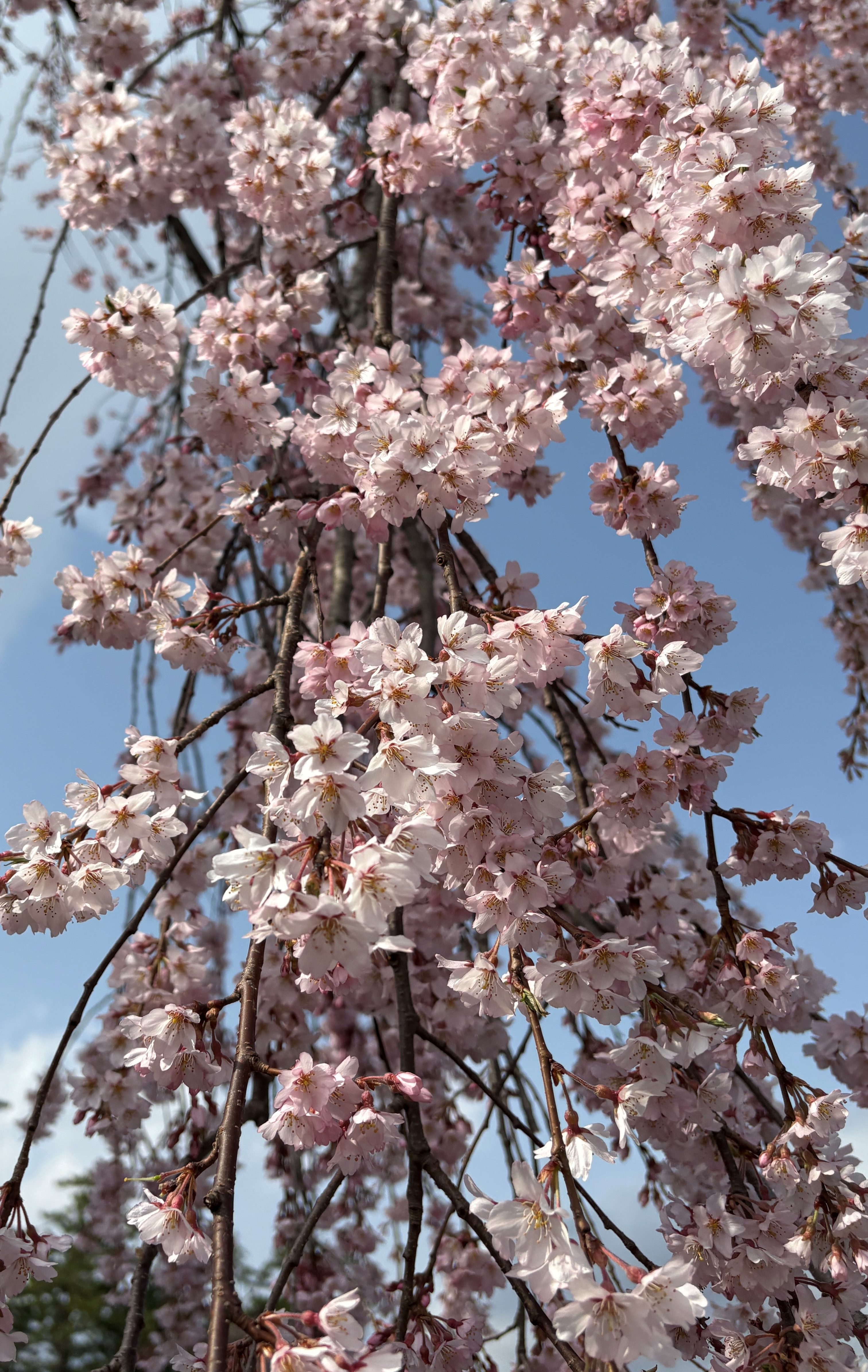 本日4月21日、『弘前七桜(ヒロサキシチザクラ)』のひとつ『八重紅枝垂(ヤエベニシダレ)』が開花しました。