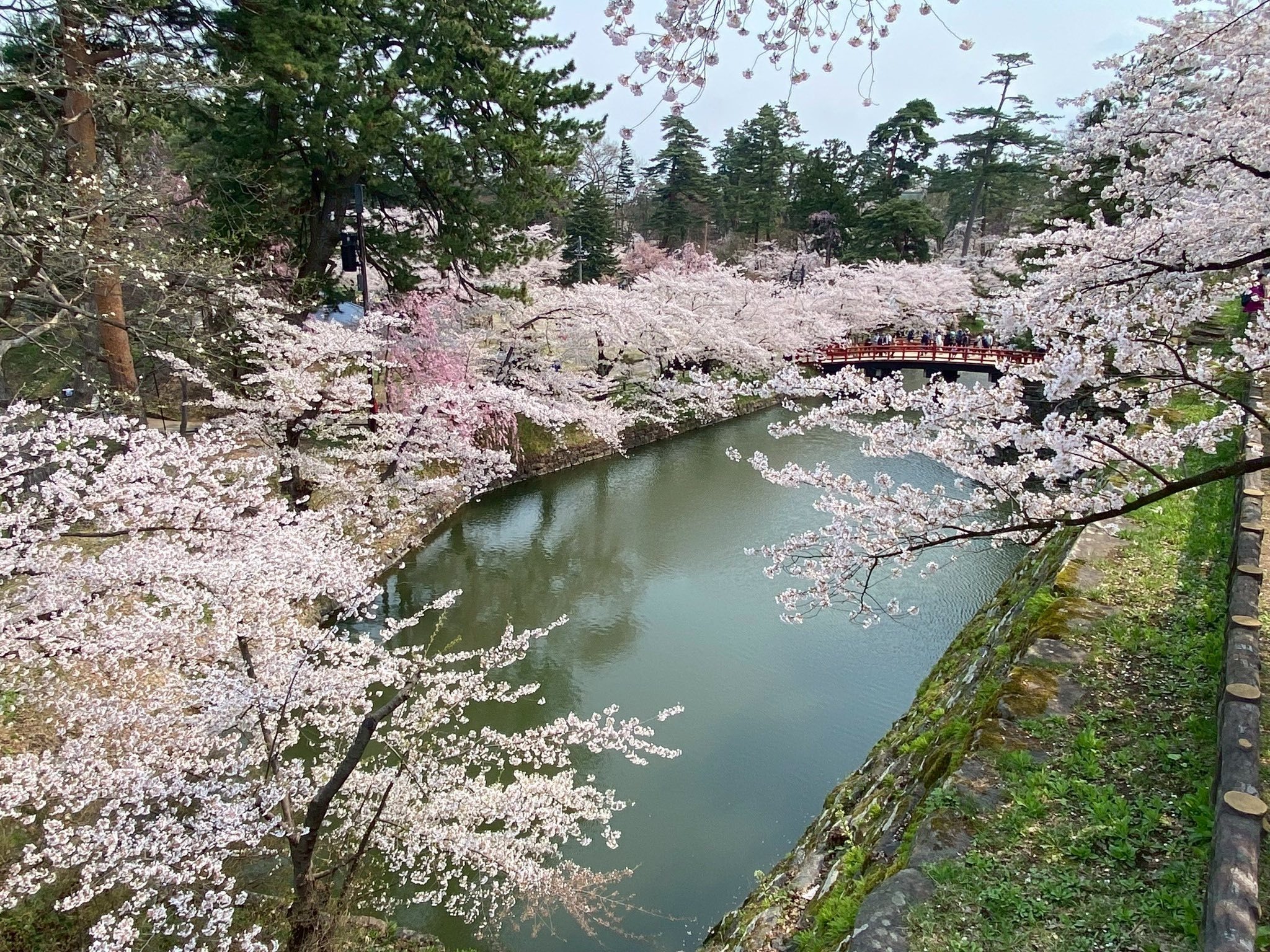 弘前公園最長寿のソメイヨシノなど、園内全域のソメイヨシノが見頃を迎えております。