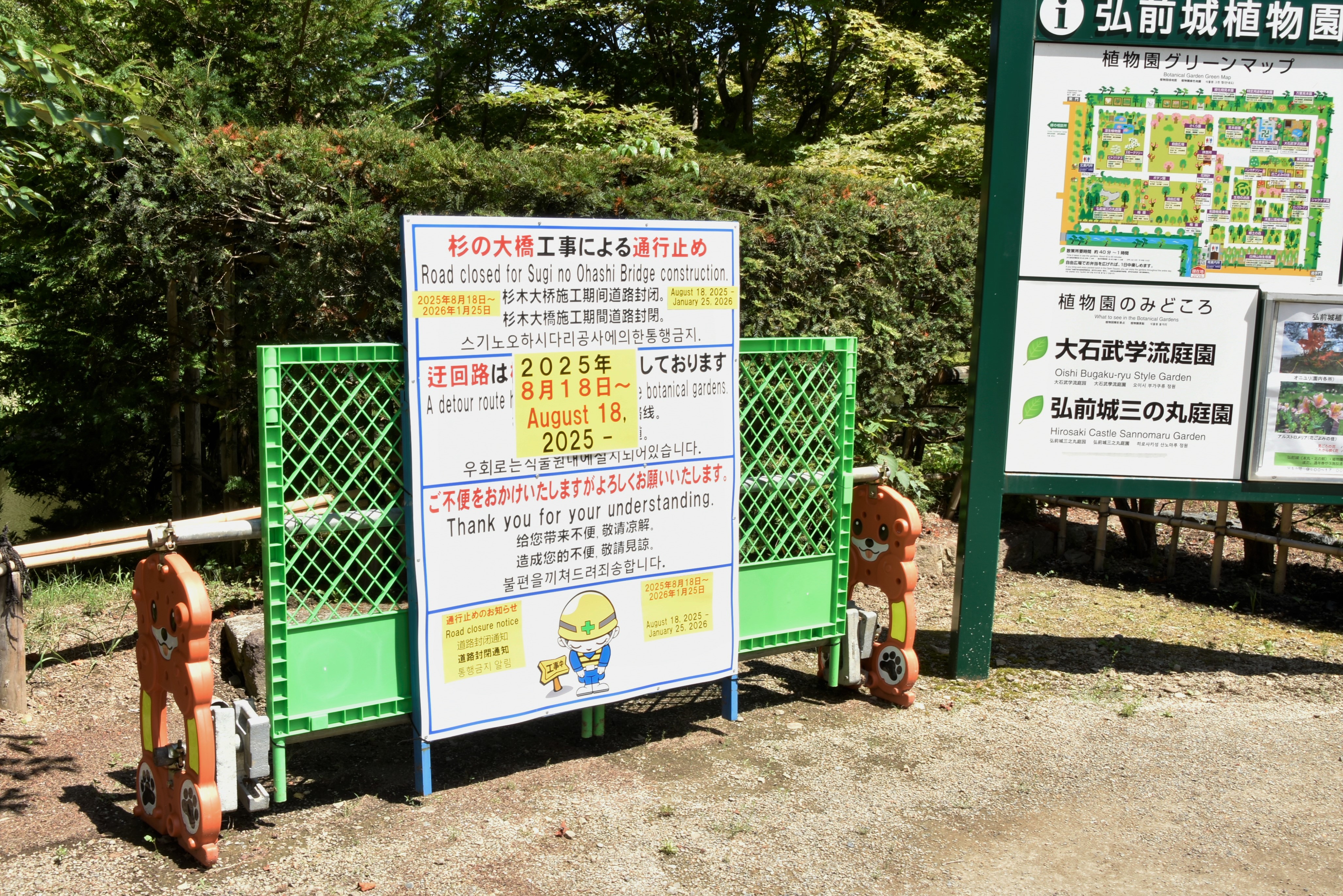 弘前公園「杉の大橋」が更新工事で通行止めに(2025.08.15)