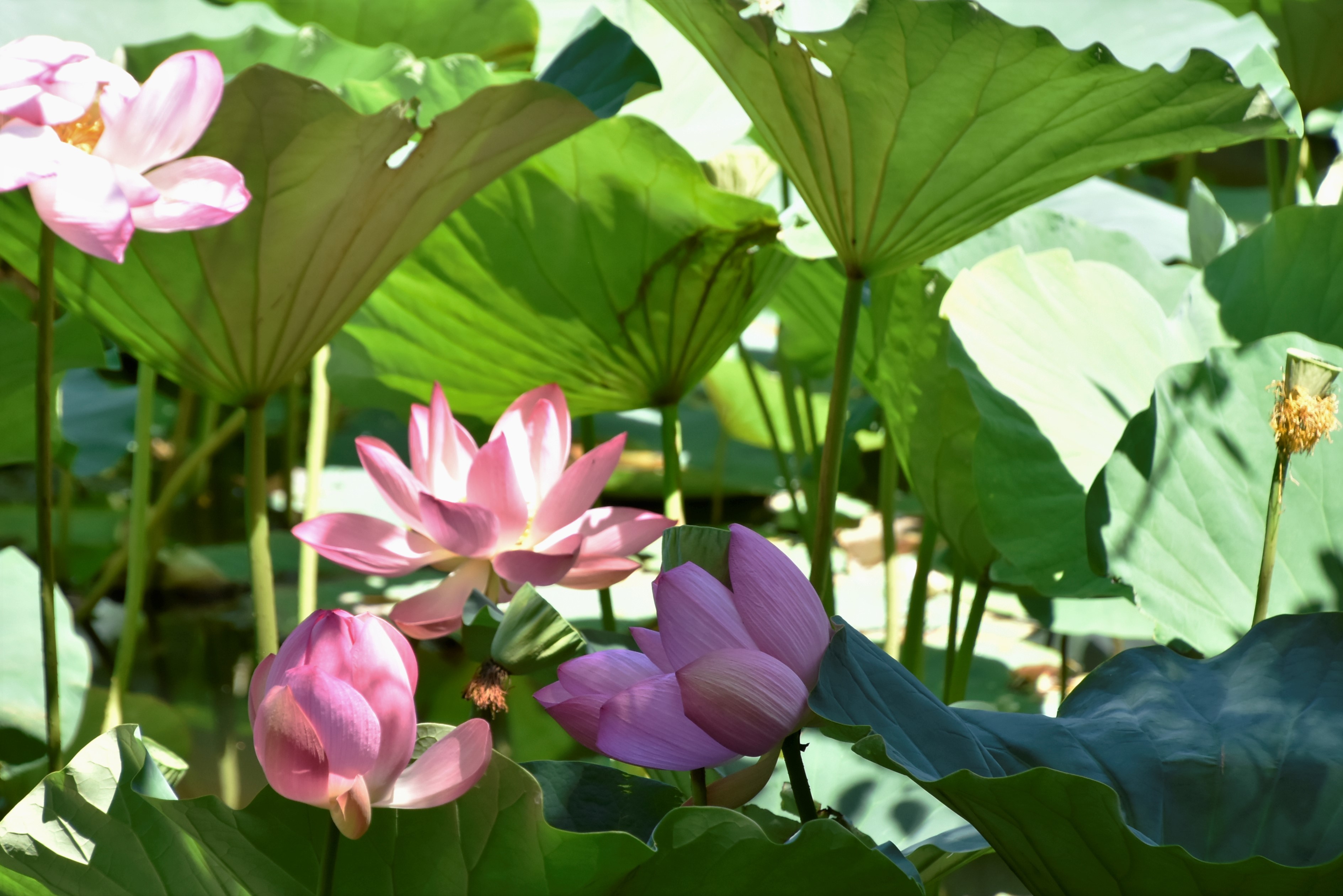 本丸の西側に広がる蓮池では蓮の花、内濠では睡蓮が咲き誇り、暑さを忘れるような涼やかな景色が楽しめます。