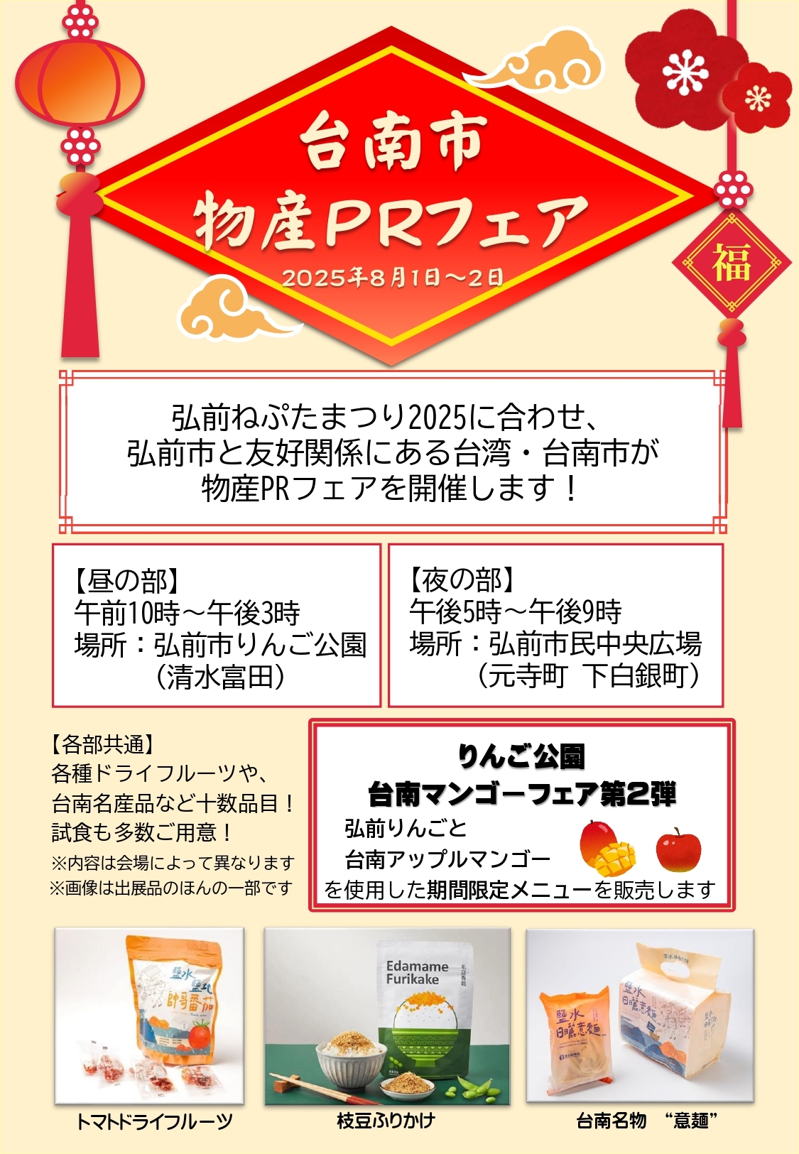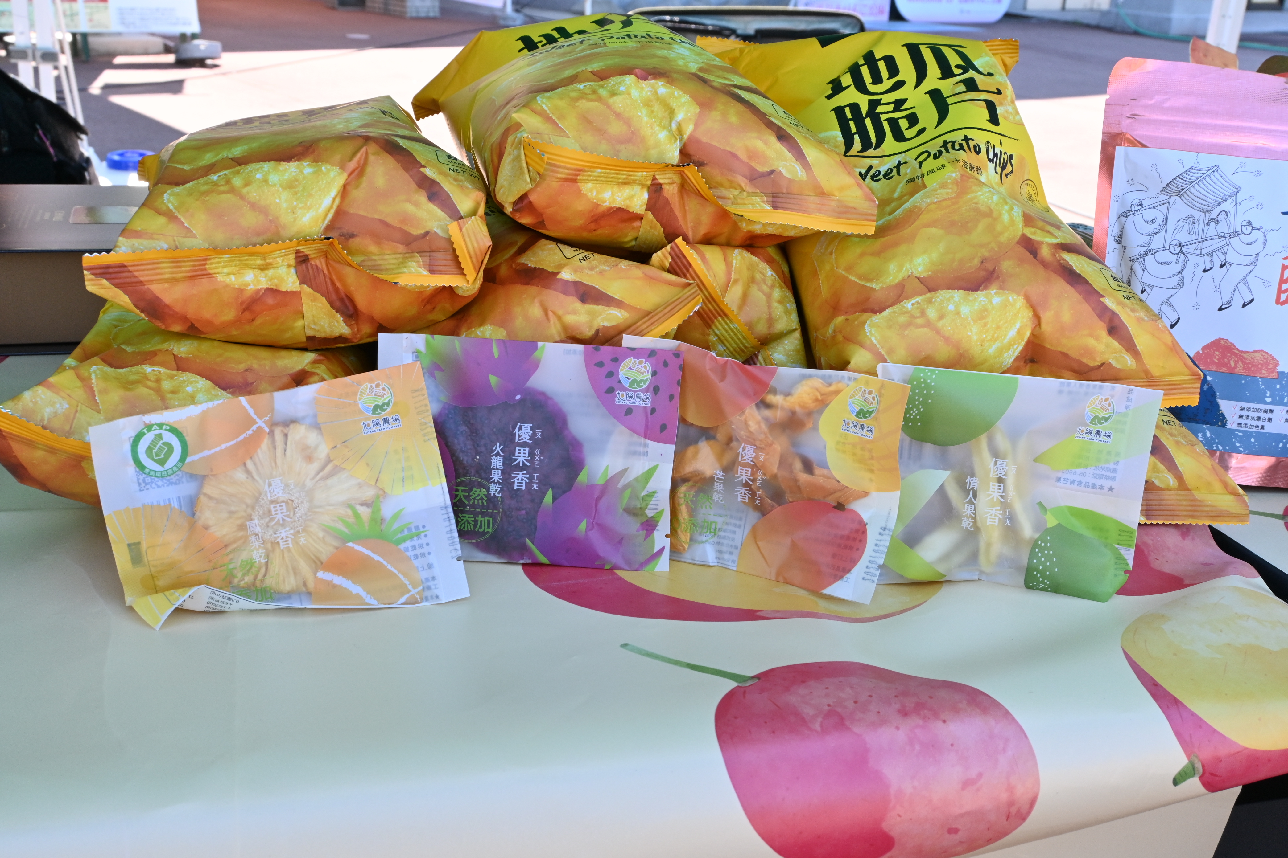 弘前市と友好関係にある台南市が、マンゴーなどのドライフルーツやさつまいもチップスなど、台南市の名産品を販売しています。