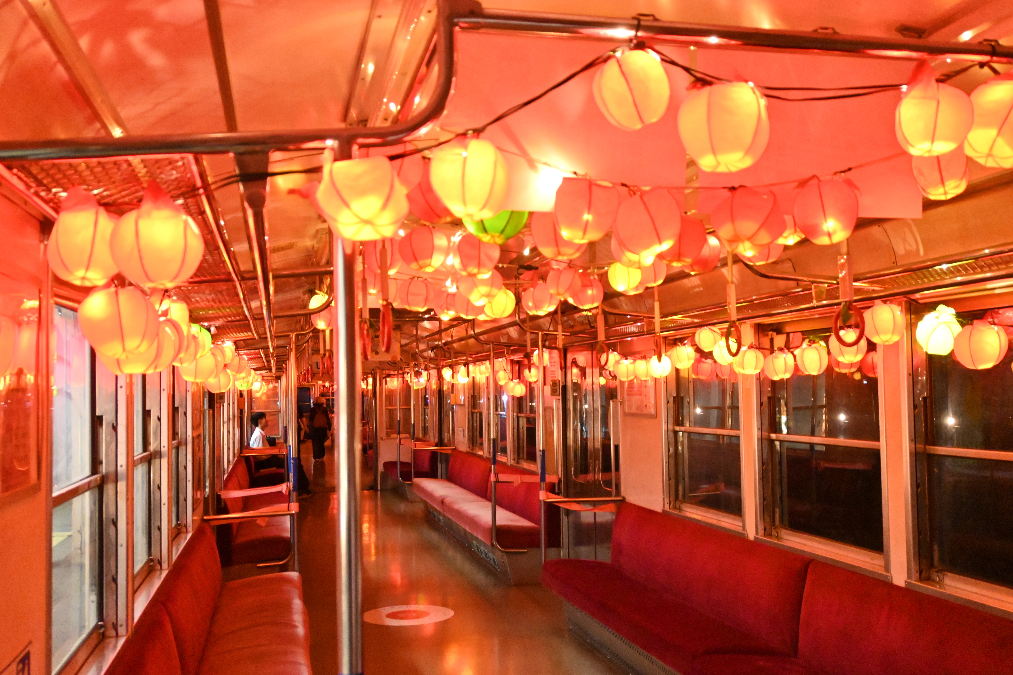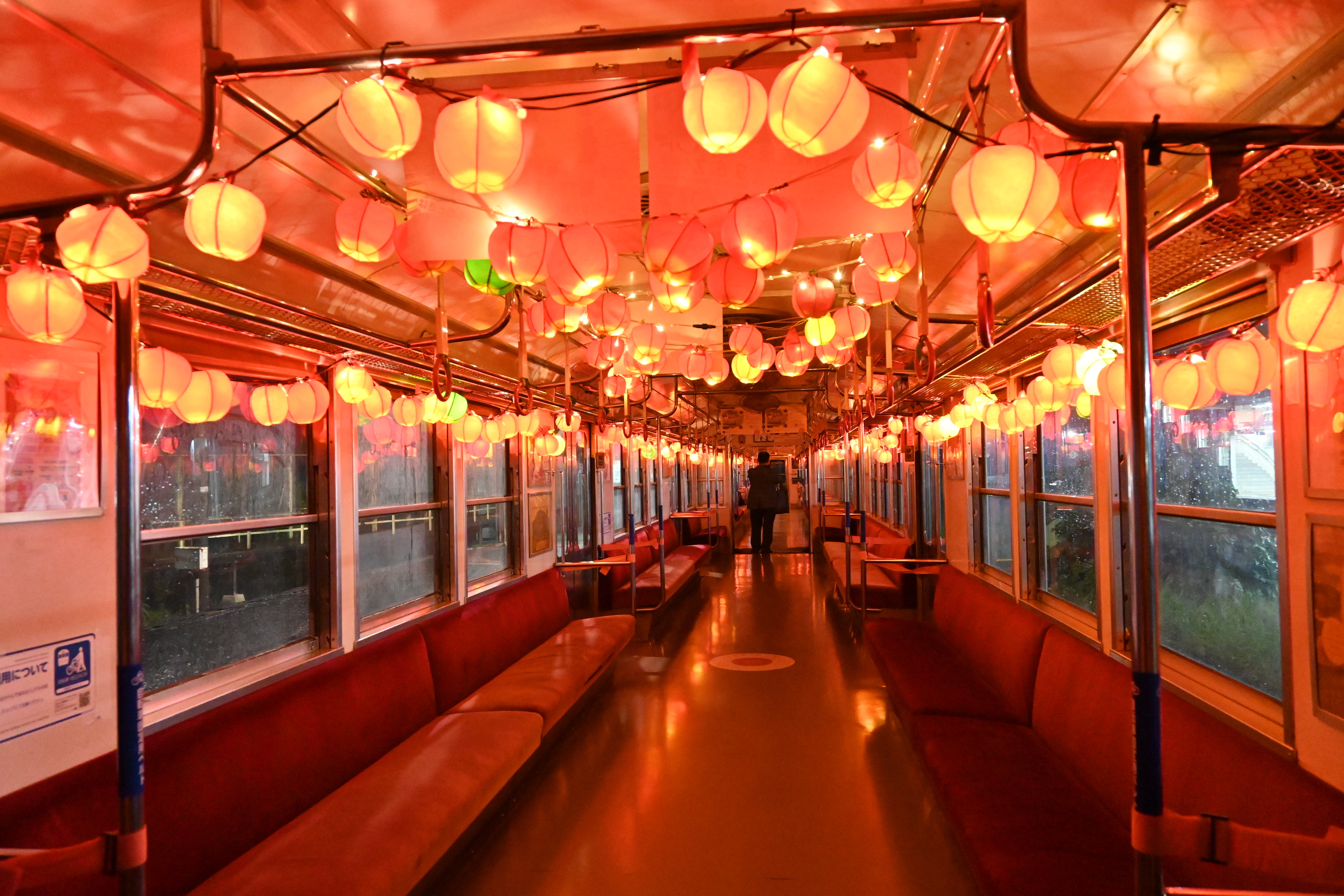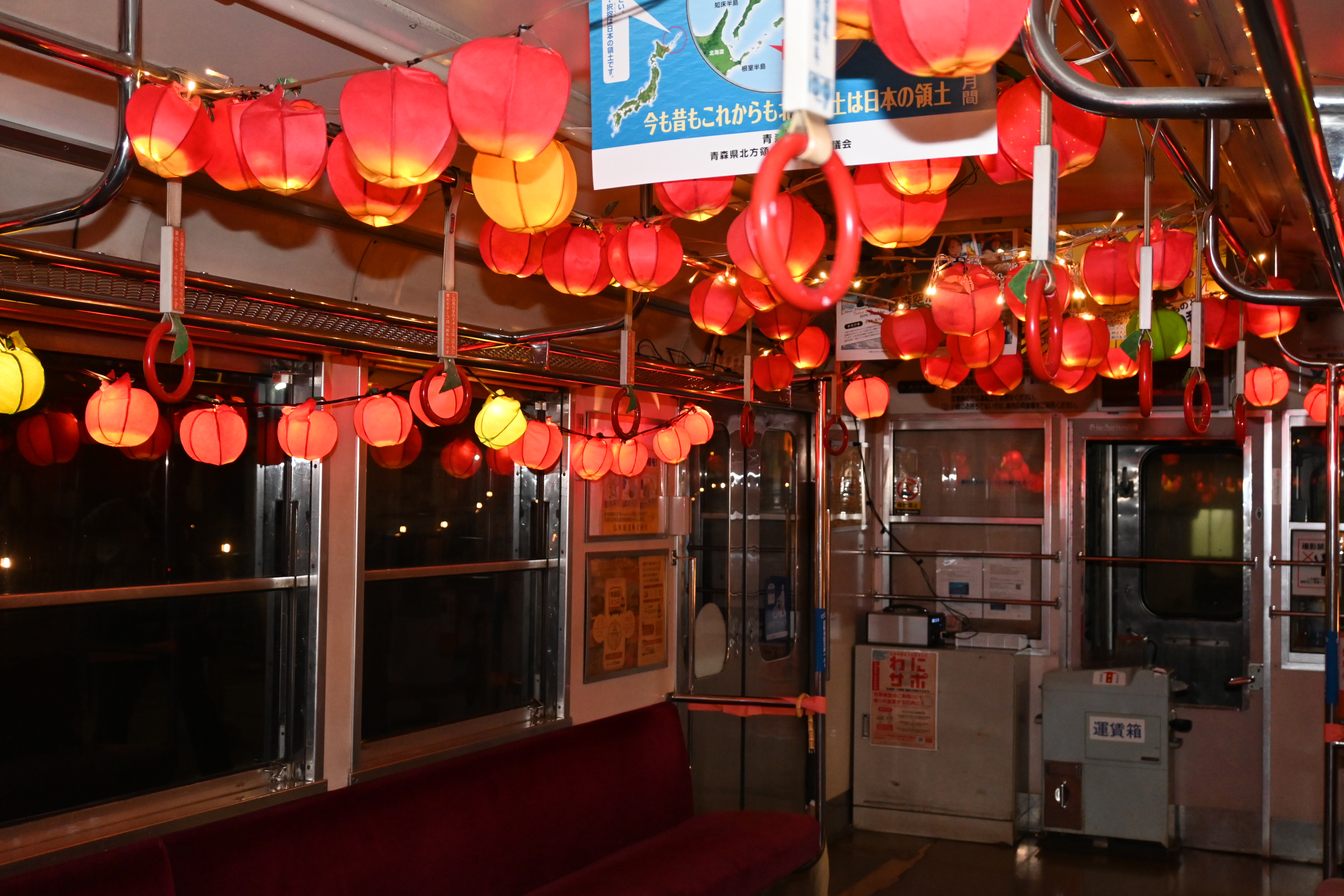 期間中の土曜・日曜・祝日の夜間は、りんごねぷたの明かりだけで運行!