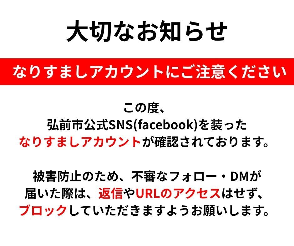 弘前市シティプロモーション(弘前市公式)Facebookを装ったアカウントに関する注意喚起のお知らせ