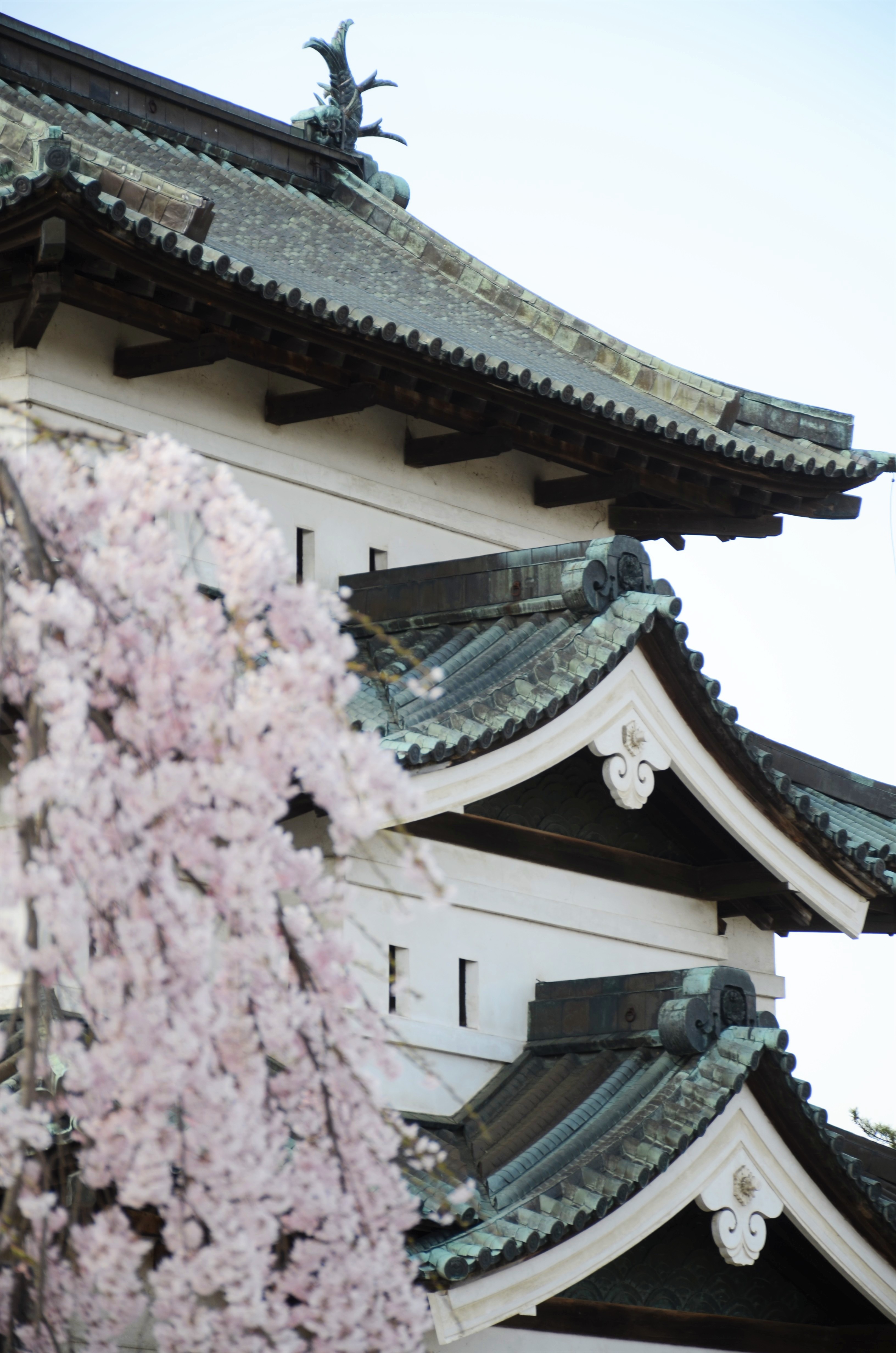 公園南側・東側の外濠は3分咲き、本丸の弘前枝垂れは満開となりました。