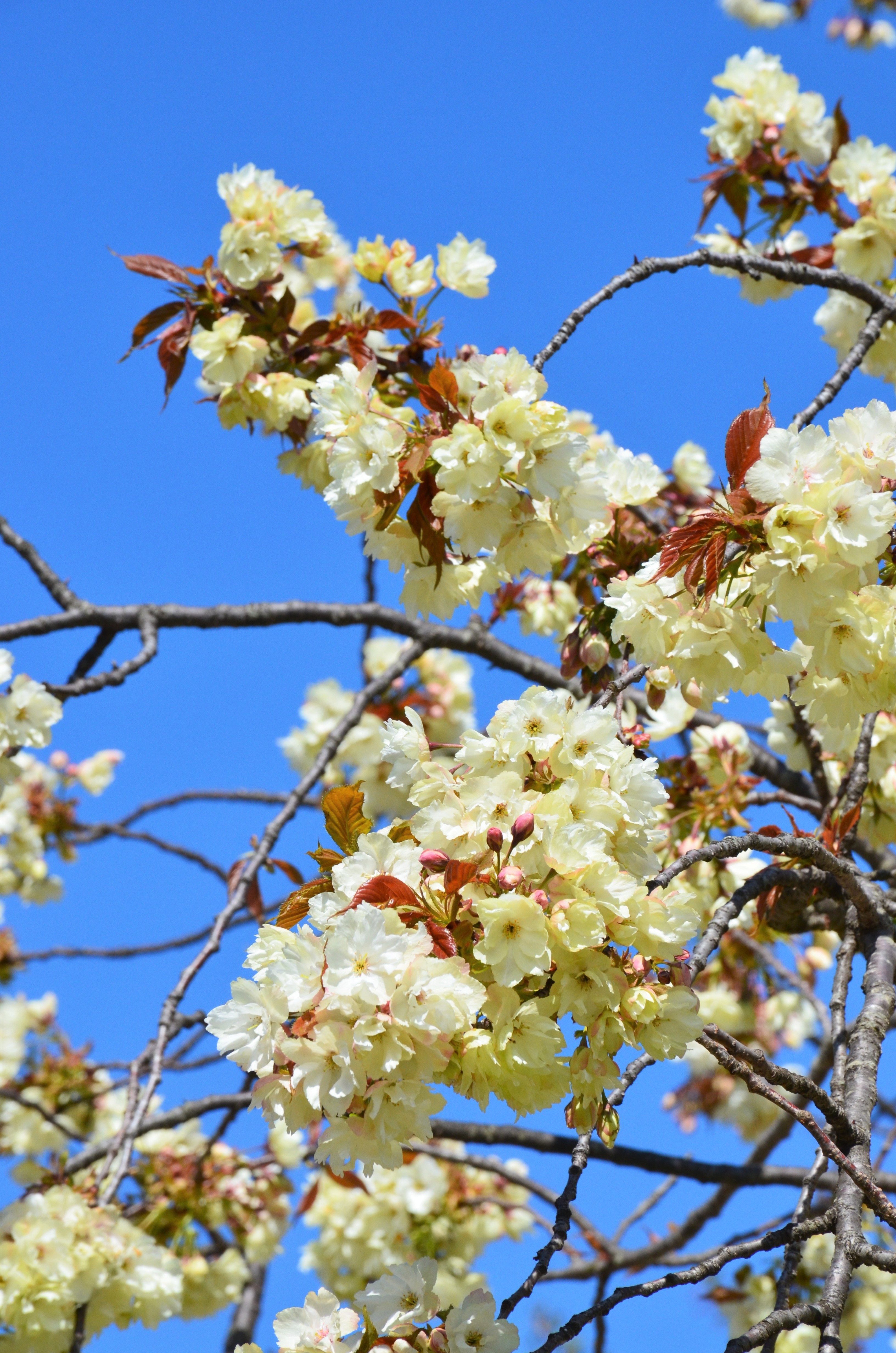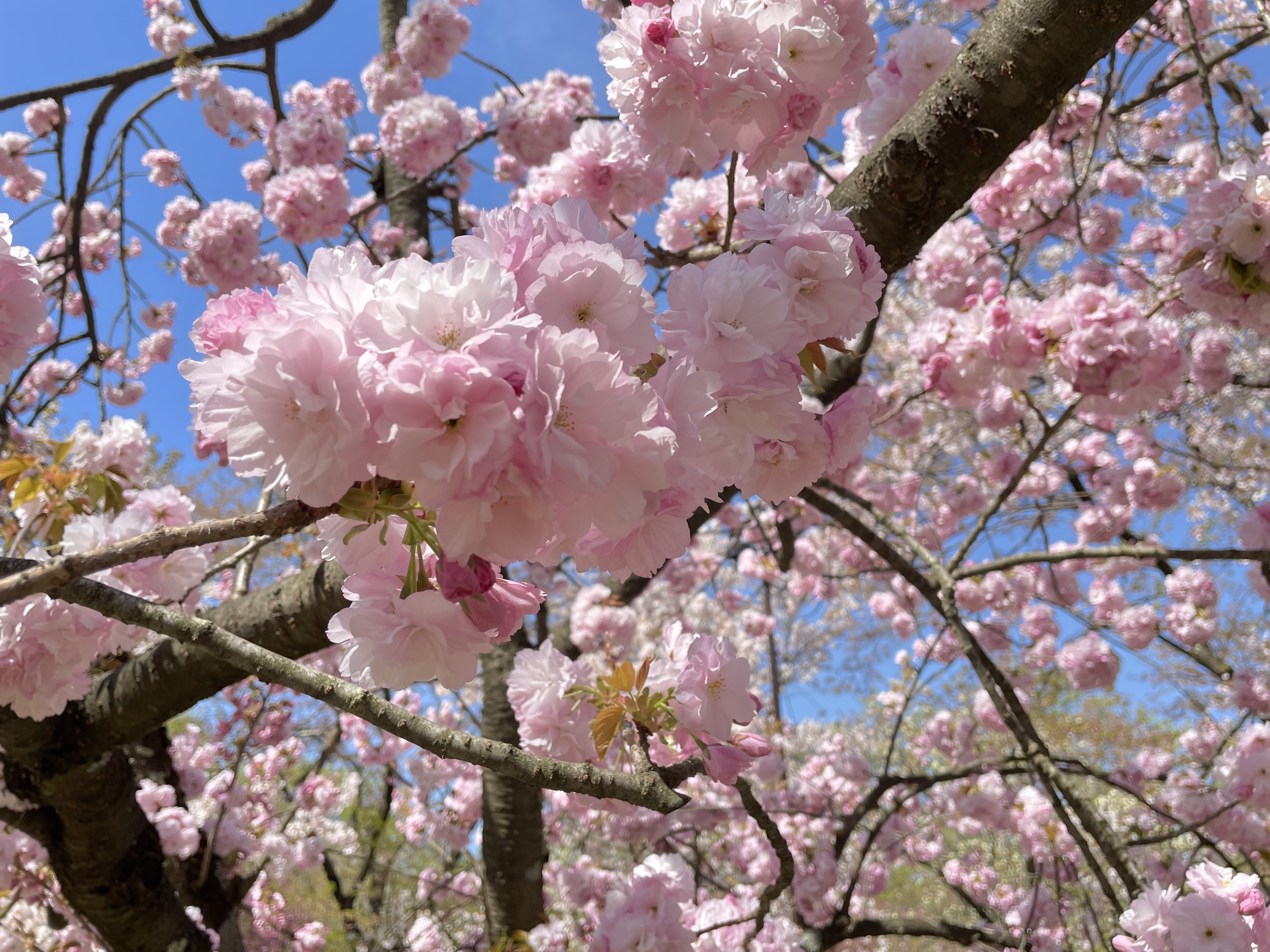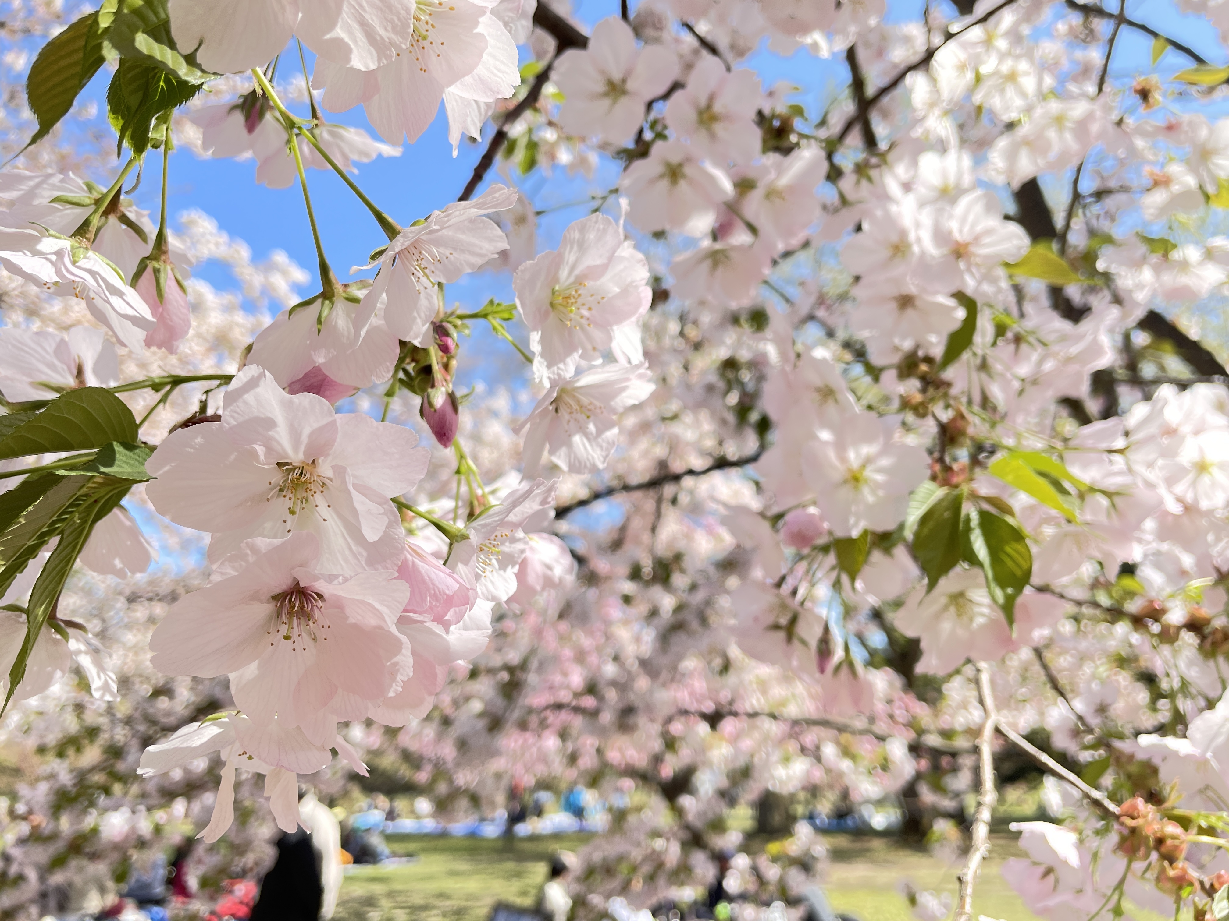 今日は快晴。園内では遅咲きの桜が次々と見頃を迎えています。