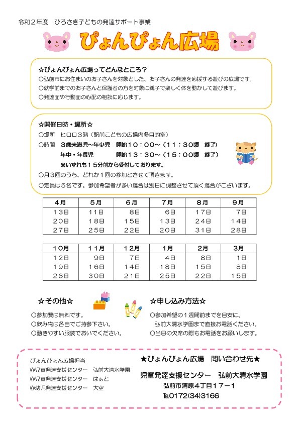 | 2 | ぴょんぴょん広場 | ヒロロ | 弘前市大字駅前町9番地20 |