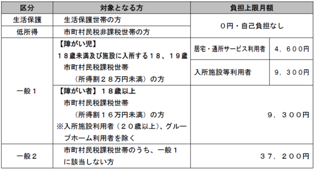 ※入所施設利用者(20歳以上)、グループホーム利用者は、市町村民税課税世帯の場合、