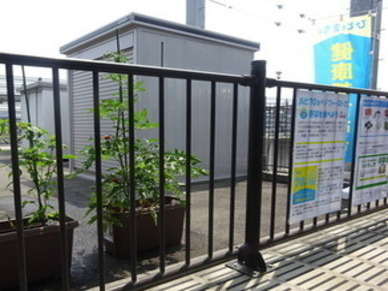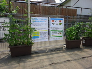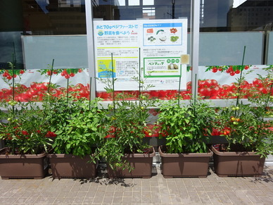 野菜摂取量拡大の第一歩として、市民の方々に野菜と触れ合っていただく機会をつくるため、各施設様のご協力のもと、トマトとパプリカをプランターで栽培しています。