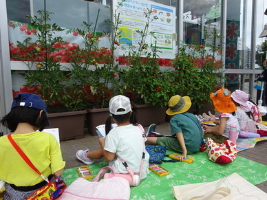 8月22日(木曜日)には、近隣の明星幼稚園から園児のみなさんが来て、トマトとパプリカのスケッチをしました。