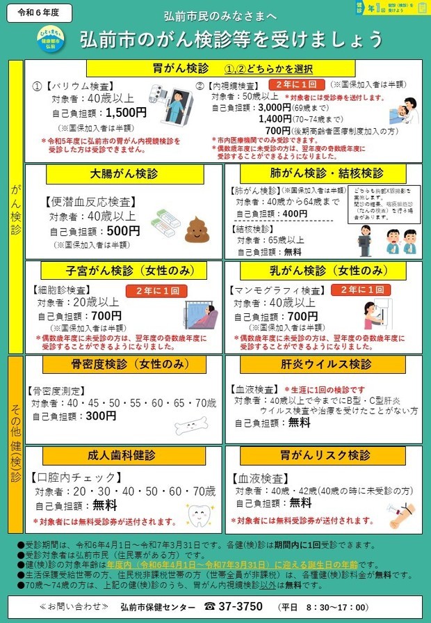 各種健診・検診の情報は、健康と福祉ごよみでご確認ください。