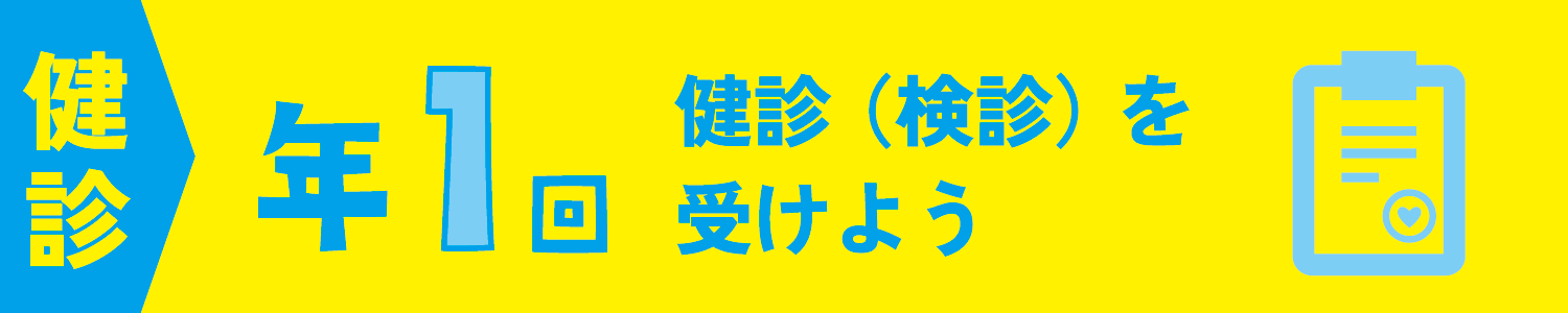 毎年1回は健康診査・がん検診を受け、異常がある場合は、早めに、必ず病院へ行きましょう。また、定期的に体重や血圧を測定するなど、自分の健康に関心を持ちましょう。