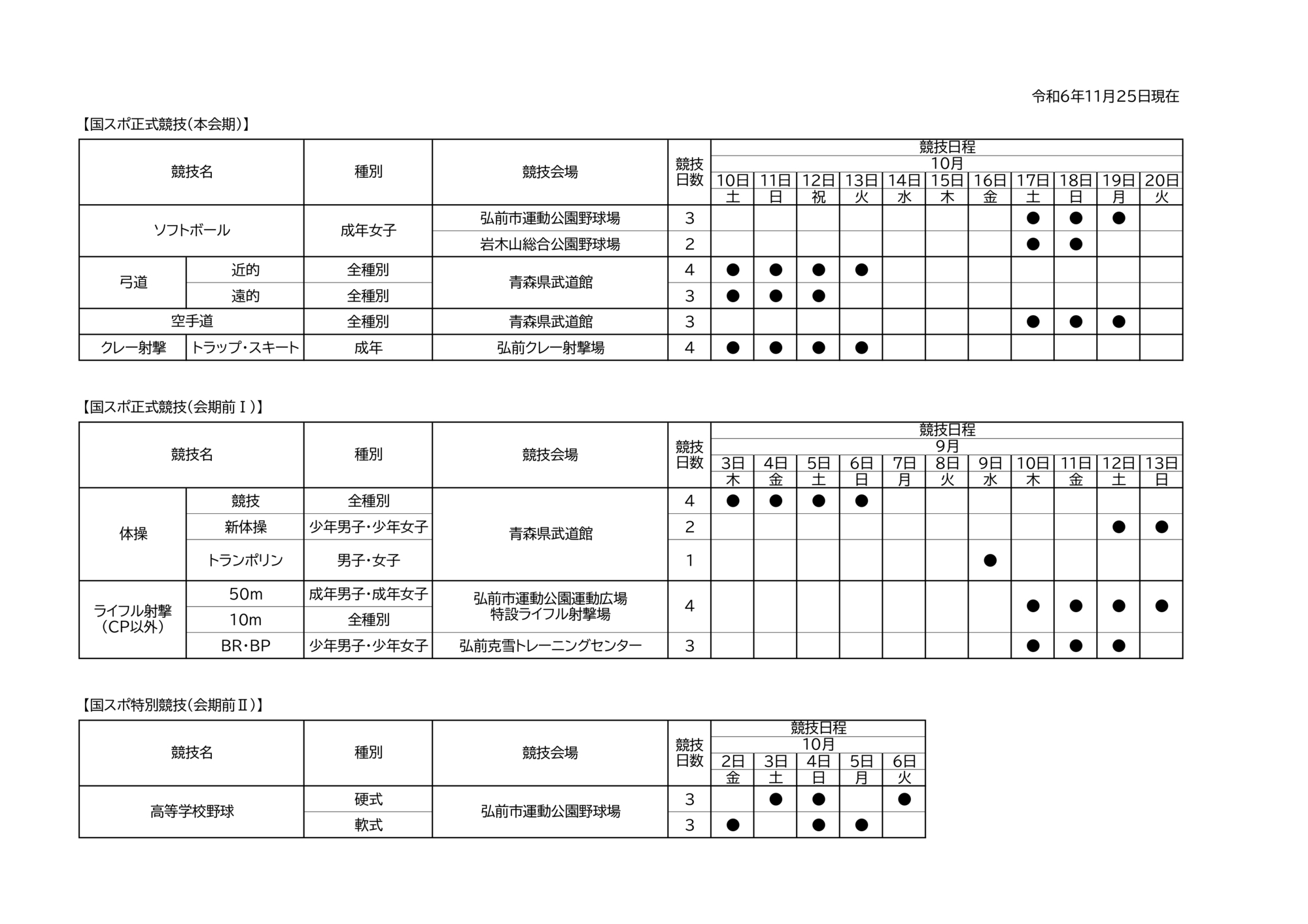 青の煌めきあおもり国スポ(第80回国民スポーツ大会)本大会競技会会期(弘前市)