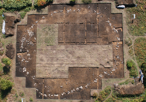 環状列石は、台地上を整地、盛土した後、盛土縁辺部に77基の組石を配して円環が構築されている。平面形は長径48.5メートル、短径39.1メートルの楕円形を呈する。組石の石材は、岩木山起源の輝石安山岩を平均十数個用いて形成されており、環状、列状など規則的な配置がみられる組石もある。環状列石から南西約100メートルで1棟のみ確認された竪穴建物跡は、直径13.8メートルの大型のもので、岩木山と環状列石を結ぶ軸線上に計画的に配置されている。その他、台地上からは屋外炉や土器埋設遺構、土坑、捨て場などが確認されている。