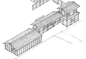 北建物は6m(3間)四方の建物で、内部は床張りとなるようです。この建物は1階建か、2階建かは、はっきりしていません。門番の詰所だったようです。