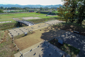 本丸東門跡[ほんまるひがしもんあと]は、南北に並ぶ3棟の礎石建物で構成され、全体で南北32.5mの規模を有します。