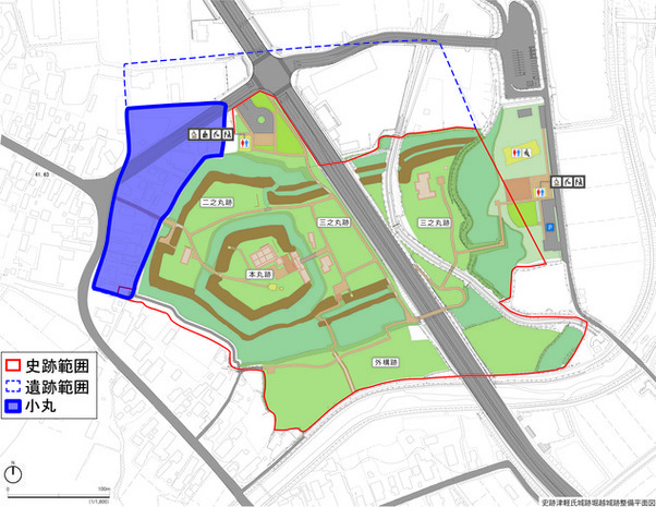 小丸と二之丸(2017年、写真左端が小丸、中央が二之丸)