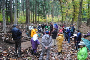 平成27年(2015)8月22日と23日に開催しました。1日目は大浦城跡[おおうらじょうあと](弘前市大字五代)と史跡津軽氏城跡堀越城跡(弘前市大字堀越)を、2日目は如来瀬石切丁場跡[にょらいせいしきりちょうばあと](弘前市大字如来瀬)と史跡津軽氏城跡弘前城跡弘前城[ひろさきじょう](弘前市大字下白銀町)本丸石垣を訪れました。