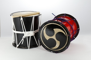 1本の木をくりぬいた胴を馬や牛の皮張りをし、仕上げるのはもちろんのこと、弘前の手工業である桶を用いた太鼓作りが「ねぷたの地」弘前ならではの製品といえます。何より、皮の仕上げが大変。毛の処理を施し、なめし、乾燥させるという文字にすれば、簡単なようでも場所や自然条件が大切な要素。鉄の輪に皮を力を込めて張るのはかなりの重労働。直径4メートルの「津軽剛情張大太鼓」も地元で作り上げた名品です。