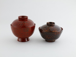 津軽地方は漆の自然林が豊かで、縄文時代の出土品からも漆を使った土器がみつかっています。津軽塗の別称でもある「唐塗」の技法は、普段使用している漆盤にあまりにも漆が付着しすぎたので清掃するつもりで研いでいるうちに、長年の間塗り重ねられた紅・青・緑の色漆が雲状に浮かび上がり類稀な美しい紋様であったため、これをヒントにして研究を重ね現在の津軽塗の手法が完成したのです。
