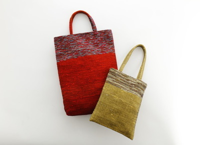 現在では、絹布をブナやなら、栗などで染め横糸にしたコート、綴れ織り・綾織りなどの技法を使ったバック、青森の四季を実現したサクリカードなど様々に応用され、裂かれた布のささくれた風合いが独特の手ざわりを生み、時を経た深みのある色合いとともにサクリの魅力となっています。