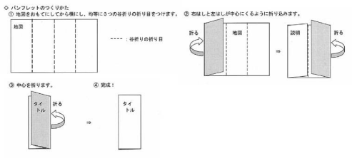 印刷して使用する場合は、両面印刷し、「パンフレットのつくりかた」をご覧になり、パンフレットをつくれば説明がより見やすくなります。