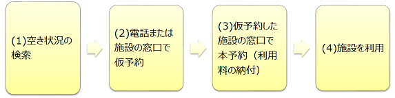 ・パソコンやスマホ等から空き状況を確認し、電話または施設窓口で予約する場合