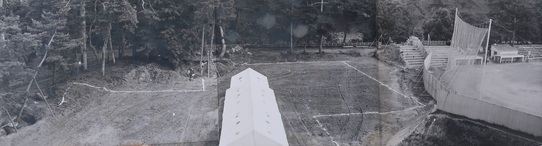 着工前(白線が建物配置、右は廃止された市営野球場)