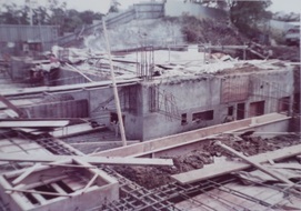 1975(昭和50)年には史跡弘前城跡の現状変更許可を得て、7月に建物本体工事に着工します。設計にあたって前川は、史跡景観に配慮して樹木を伐採せずに、弘前城跡に調和するよう努めたとされます。施工は清水建設で、翌年8月に竣工し、1977(昭和52)年4月20日に開館式、22日より一般公開されます。また、翌年には博物館法に定める登録博物館となり、1979(昭和54)年の前庭整備で完成となります。