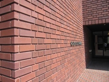タイルを型枠に先付けし、鉄筋を組んでコンクリートを流し込む工法で、前川建築後期によく見られる特徴です。博物館のほか市役所新館、緑の相談所、斎場で使われています。