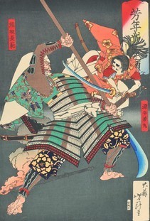 月岡芳年 「芳年武者无類 源牛若丸 熊坂長範」 (西井コレクション、明治16年) |