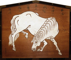 高照神社拝殿絵馬 新井常寛「神馬図」 「津軽漆塗手板県重宝」