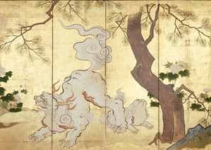 鵜川常雲「金地唐獅子図屏風」(部分) 昭和39年のさくらまつり写真