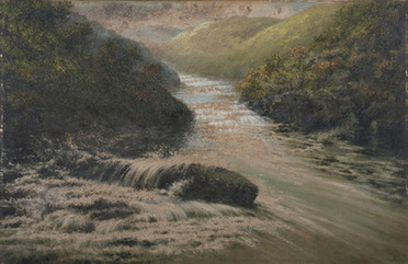 湯浅一郎「緑陰」セントルイス ラグーザ玉「保津川の渓流」(笠間日動美術館所蔵)