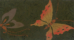 棟方志功作の市民会館緞帳原画「御鷹揚ゲノ妃々達々」と同一構図の全4枚(「道標の柵」、「揚鷹妃の柵」)を初めて一斉展示します。