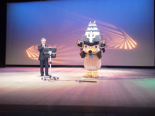 ぼくも県内のゆるキャラたちと一緒にフォーラムを盛り上げたんだ