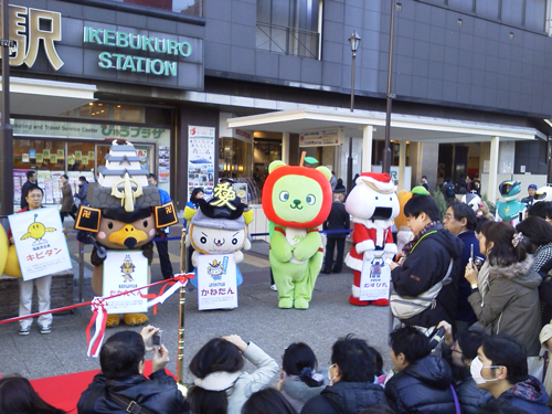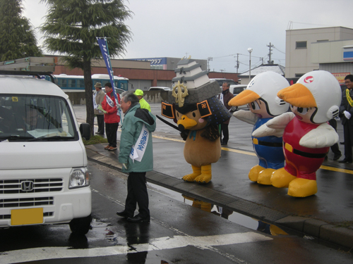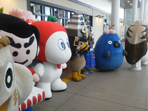 ぼくを含めたゆるキャラたちで、お出迎えをしたんだ♪