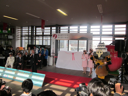 また、東北新幹線全然開業CMにも出演した吉幾三さんや泉谷しげるさんからの応援メッセージ上映や、三村知事による激励の言葉など、新幹線でもっと青森県を元気にしていこうという強い意気込みが、会場から感じられたよ☆
