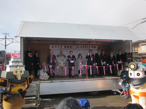 この日は、新里駅で行われた「SL48640号機移設及び弘南鉄道新里駅リニューアルオープンセレモニー」におでかけしたよ!