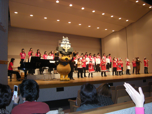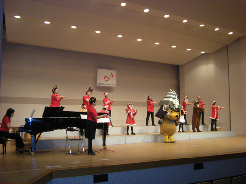 今回は、総勢11体のゆるキャラと、りんご娘5人+アルプスおとめ6人と、ステージを縦横無尽に動いてのライブになったよ